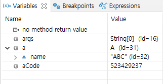 먼저 메인 메소드에서 run(a) 를 하기 직전까지의 상태를 확인해보면 다음과 같다.