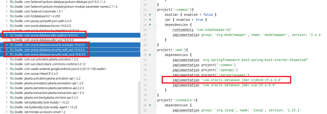 그래서 해당 프로젝트의 오라클 관련 의존성을 모두 뒤져보았다.
