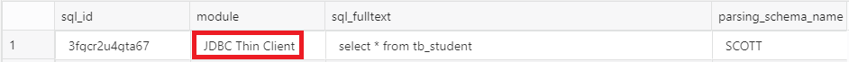 SELECT SQL_ID , MODULE, SQL_FULLTEXT, PARSING_SCHEMA_NAME