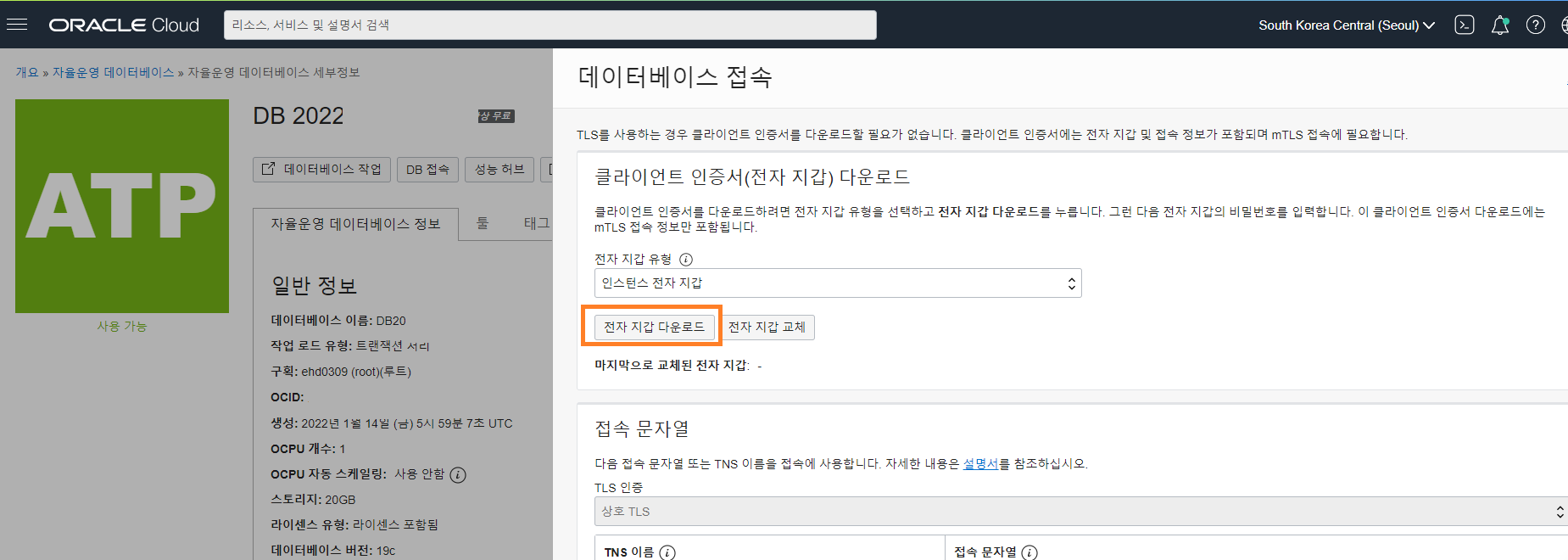 기본적으로 오라클 클라우드 데이터베이스는 전자지갑(Wallet) 을 활용해