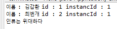 return "이름 : " + name + " id : " + id + " instancId : " + instanceId;